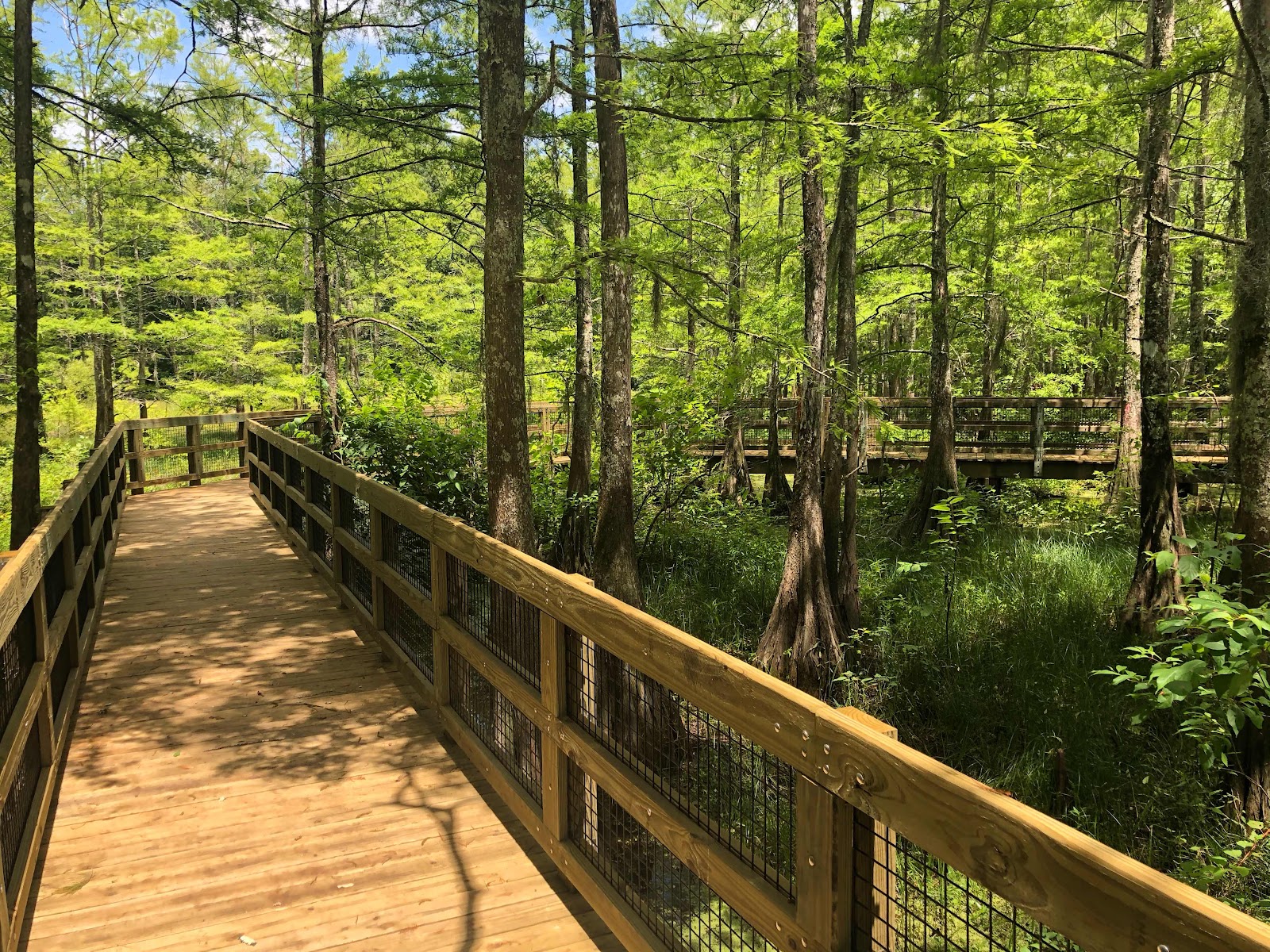 If you are looking for a place to picnic, hike and fish or perhaps just a place to contemplate life, while amongst beautiful surroundings, then read on to learn about this spot which recently reopened to the public after renovations. Bogue Chitto National Wildlife Refuge is comprised of approximately 34,500 acres of land in the Pearl River Basin. The southern most portion of the refuge can be easily accessed at the Pearl River turn around exit off if I-59 in Louisiana. Here you will find the Jim Schmidt Boardwalk and Trail,which is an area adorned with piers, boardwalks, picnic areas and a lake! This site offers lots of opportunities for Frugal Family Travelers seeking outdoor activity and adventure.
